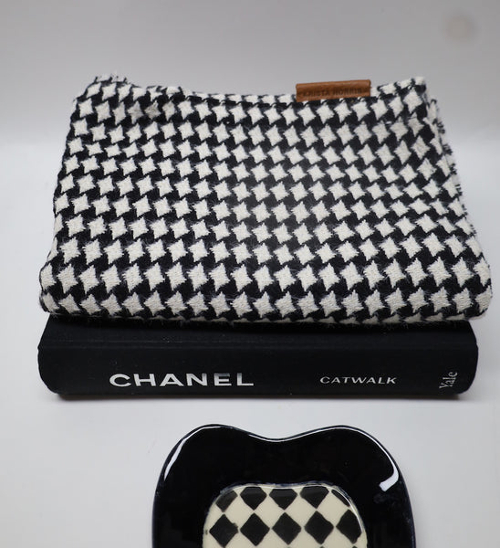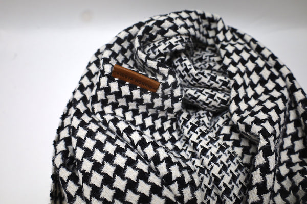 A classic houndstooth in traditional black and white for the holidays, this wool blend is a soft wingtip style. 80" x 20" Wingtip Style - Wool Blend