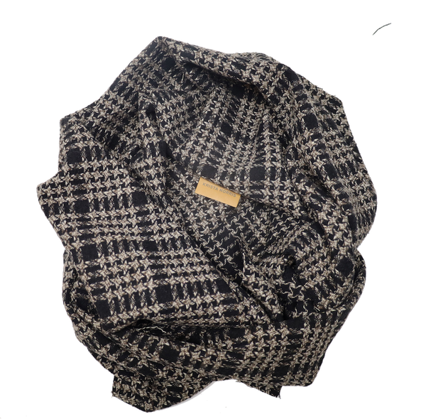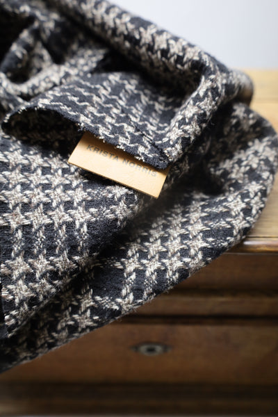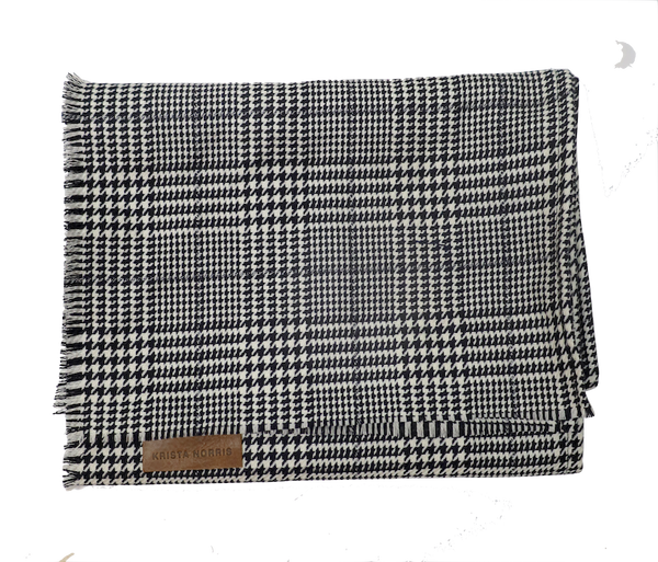 This is our Victoria Shawl. A traditional Glen houndstooth wool weave, this is our Maverick Shawl style creating an oversized classic scarf look. Wool and mixed fibre blend. Sewn in...SOLD OUT