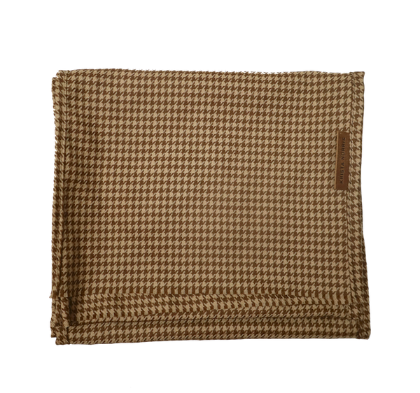 A classic men's straight style scarf in a golden houndstooth. Made in Italian virgin wool. 15" 70" - Italian Virgin Wool - Leather LabelSOLD OUT