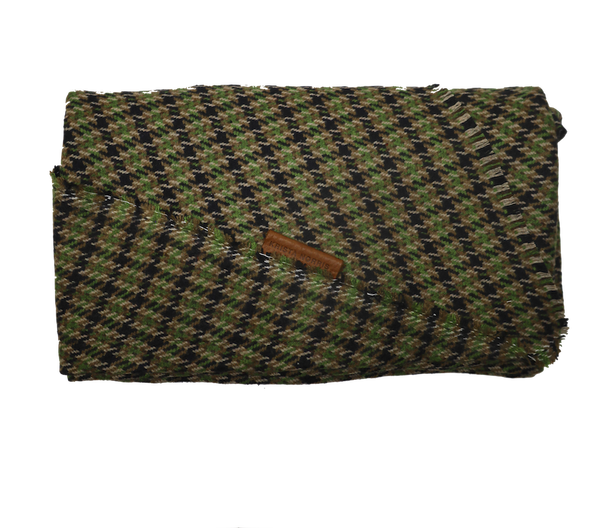 This Moss green is a houndstooth blend of green, taupe and brown and and is an earthy addition to an outfit. This is a wingtip style scarf. Mixed wool blend...