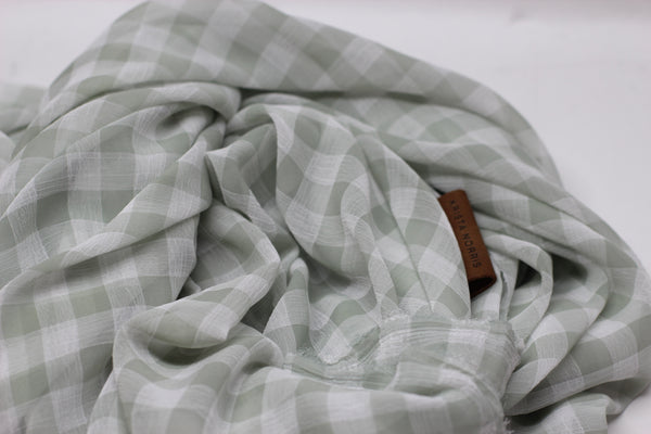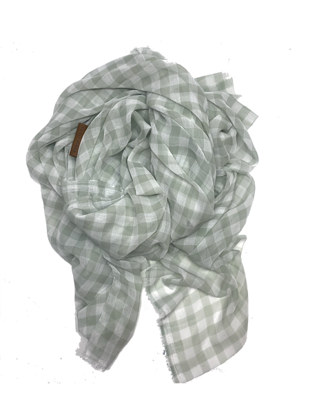 Crafted in an oversized square silhouette, this delicate gingham design delivers effortless versatility in a breathable, featherweight fabric. The soft aqua palette brings a fresh, seasonal elegance to any...SOLD OUT