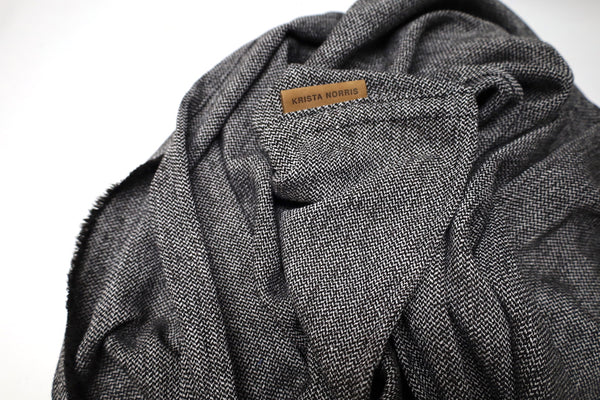 This signature wingtip scarf is in a classic herringbone with a beautiful drape when double wrapped. 50% Viscose, 50% Acrylic 85" x 22" Wingtip Style